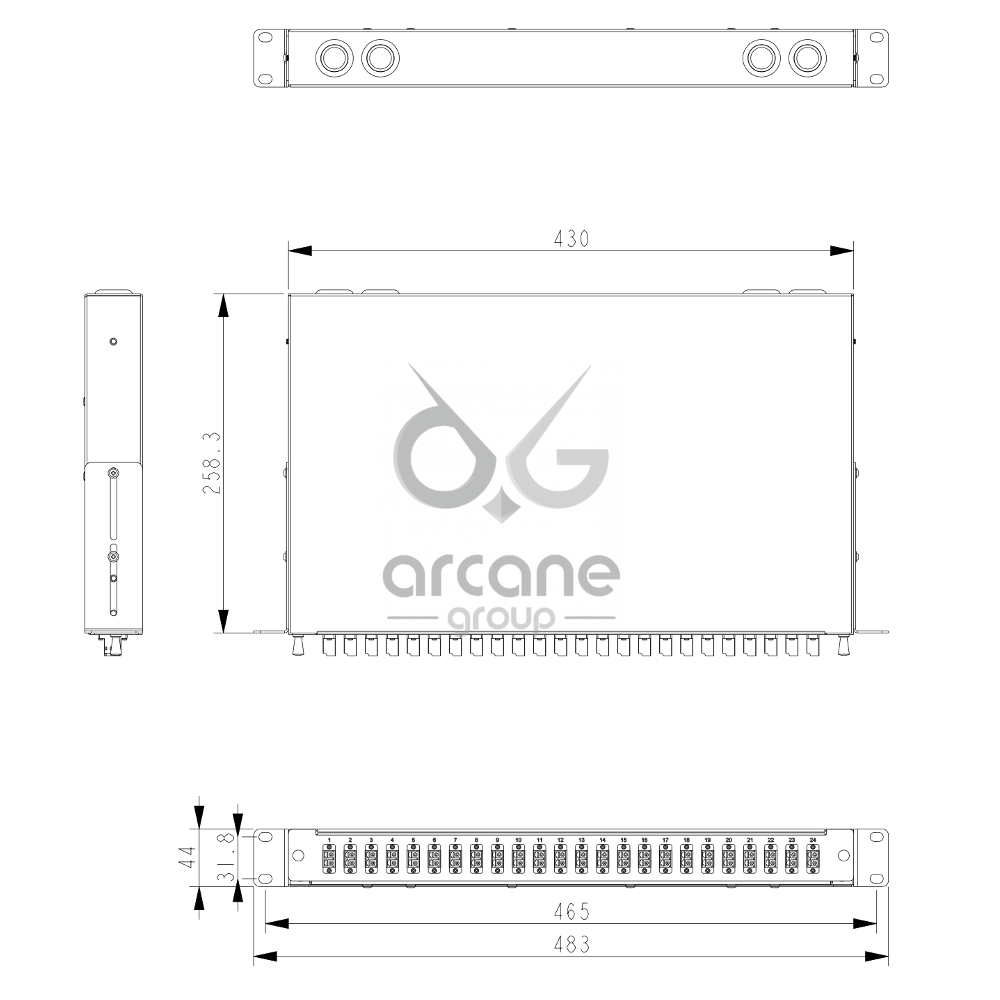 - 1U Rack 19″ mounted